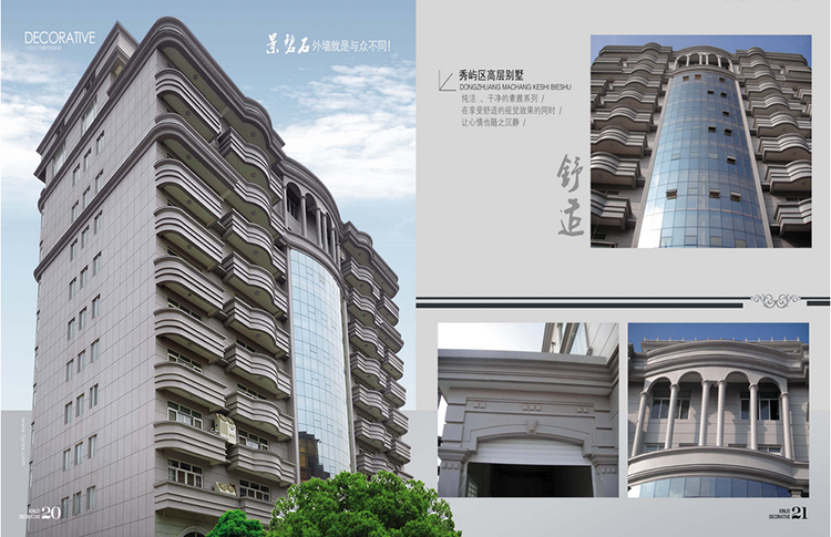廣泛適用于高檔的樓堂館所、高層公寓、居民別墅等建筑墻面的裝修飾面,更是瓷磚貼面老墻翻新實現(xiàn)豪華裝修的佳選。